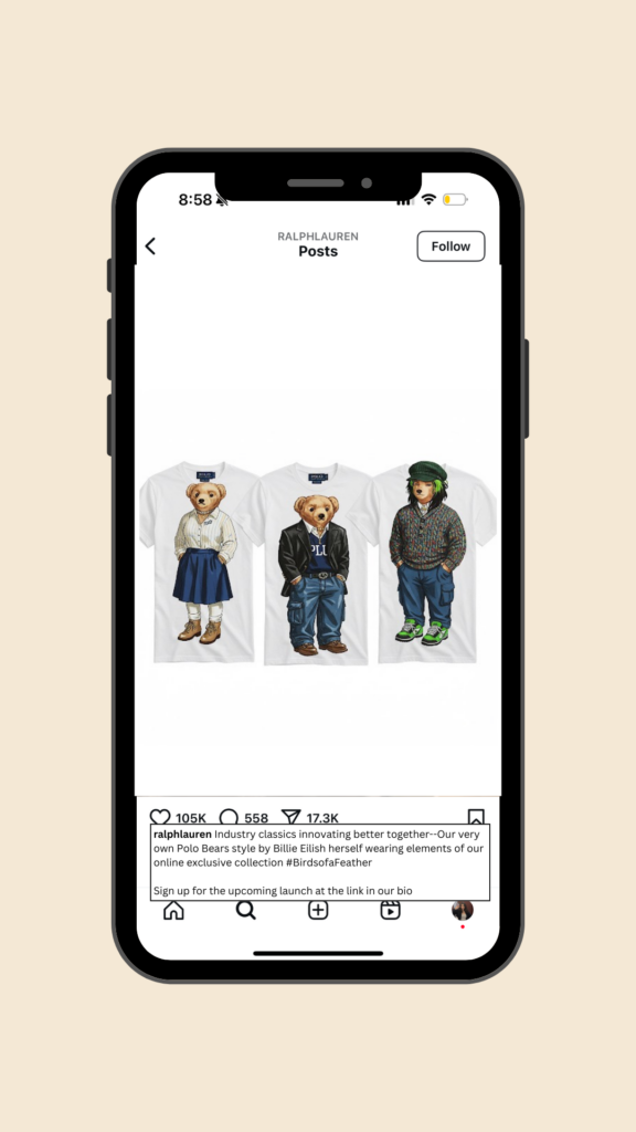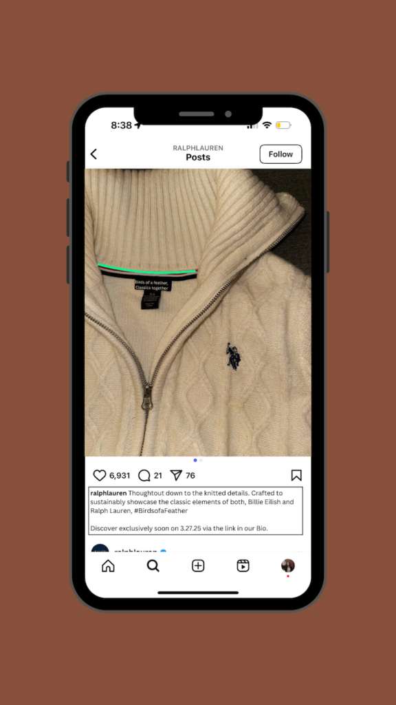 As previously mentioned, while Gen Z does want to have frugal/cheap fashion practices—they also really value sustainability. Highlighting GenZ’s desire to be sustainable and Ralph Lauren’s timeless, long-lasting products and apparel go hand and hand making this collaboration one worth splurging on.